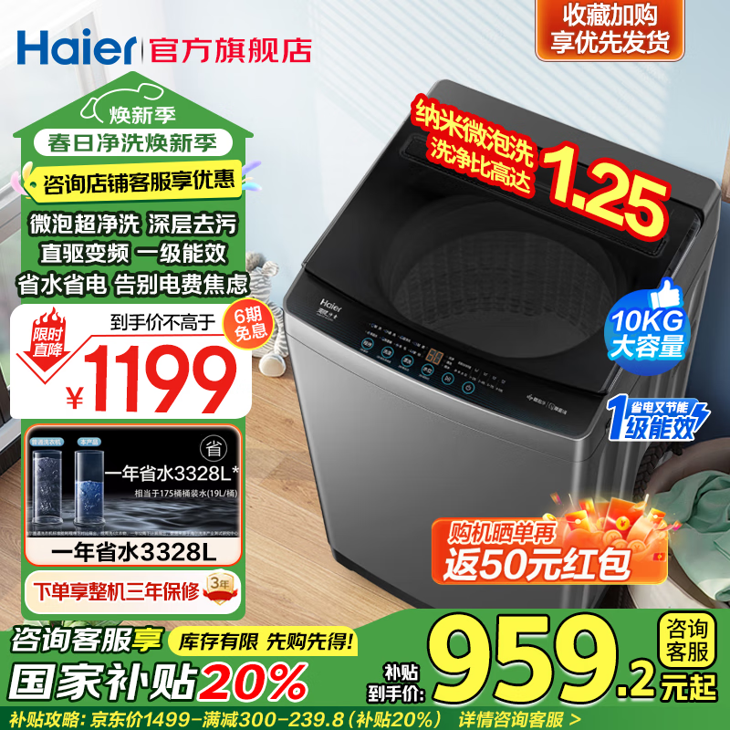 海尔大神童10KG洗衣机京东优惠价919元