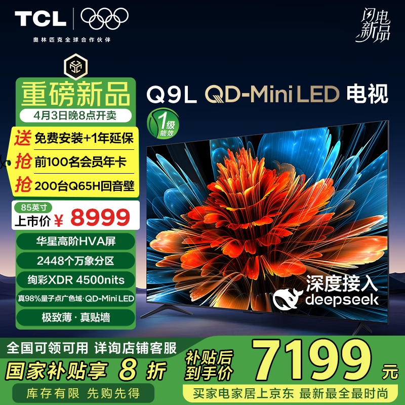 TCL 85Q9L电视京东特惠7090元享震撼视觉体验