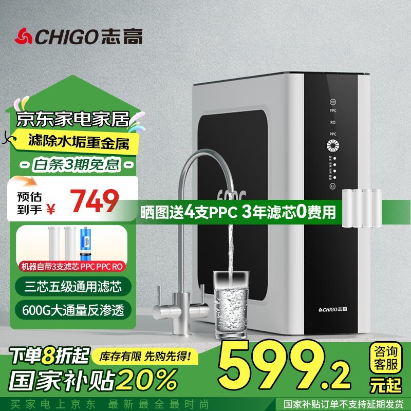 志高CG-R0-600G反渗透净水器599元包邮(原价1299元)