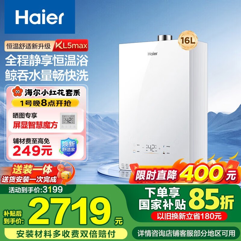 海尔小海鲸KL5MAX燃气热水器京东优惠价2215元