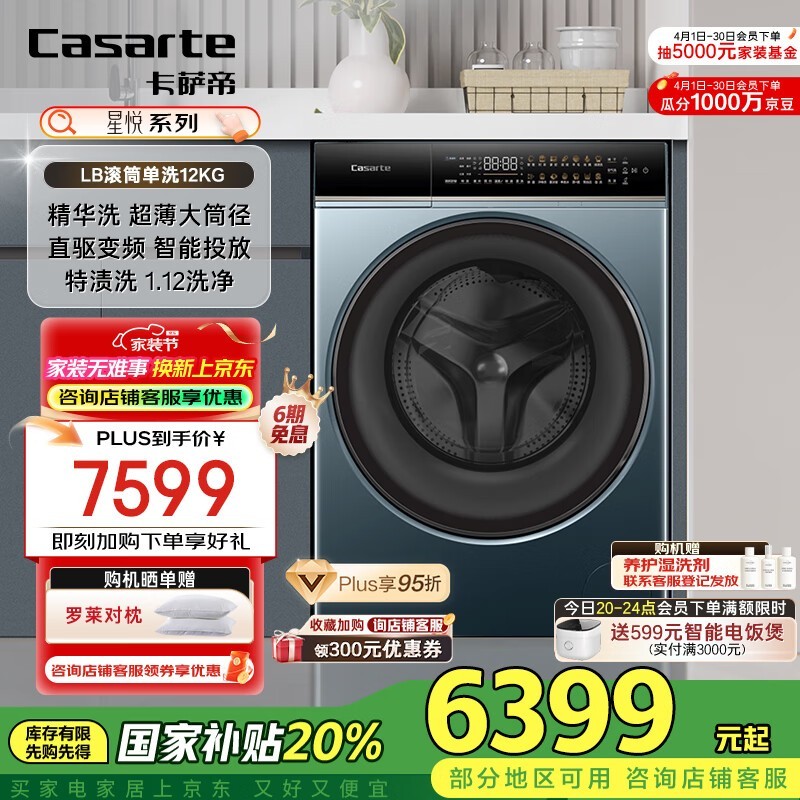 卡萨帝星悦12公斤滚筒洗衣机京东特惠6079元到手