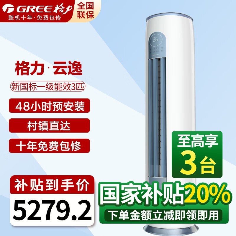 格力云逸-Ⅱ系列立柜式空调,新一级能效,静享舒适