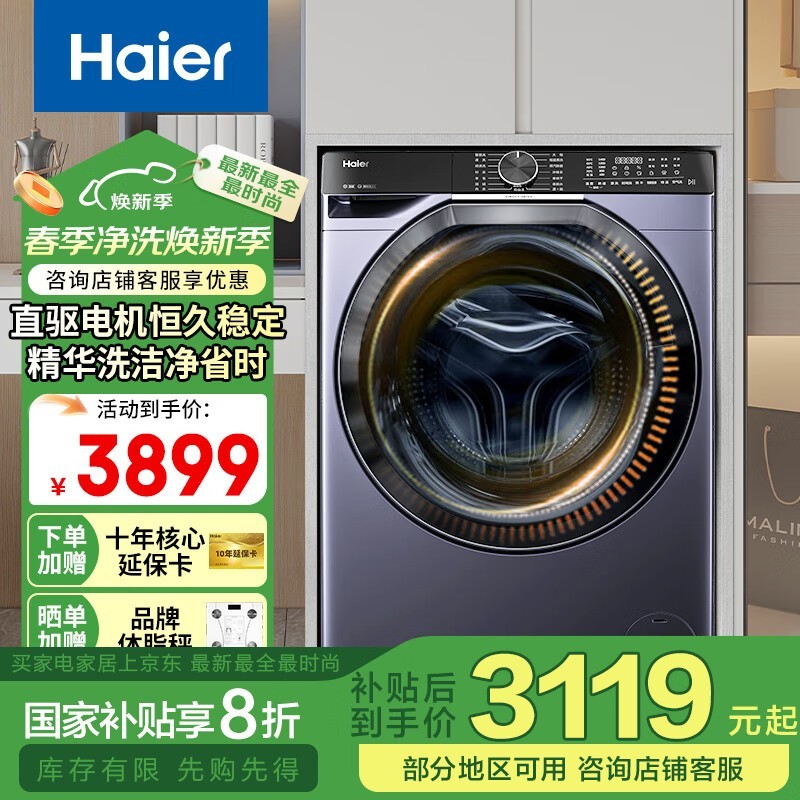 海尔云溪洗烘一体机10KG晶釉蓝京东到手3119元