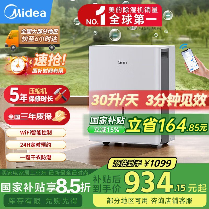 美的CF30BD/N7-DP5除湿机大循环风量强力除湿净化空气