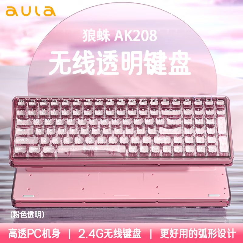 狼蛛AK208小翘99键无线充电键盘粉色透明壳