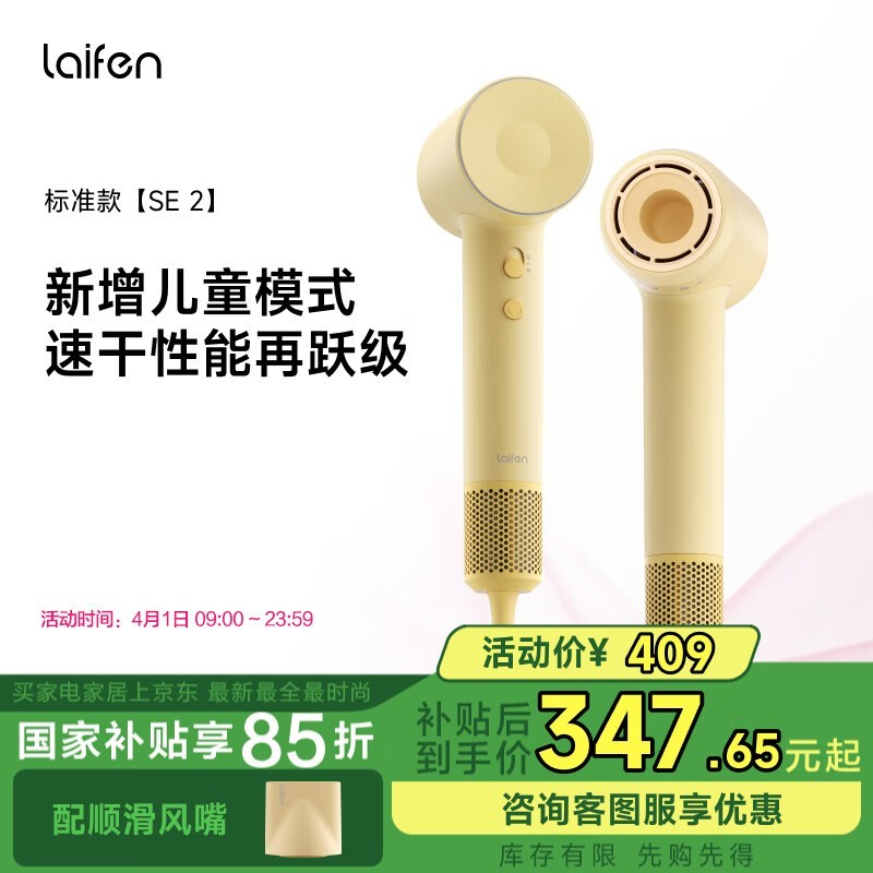 徕芬SE2高速吹风机黄低噪护发京东好价258元