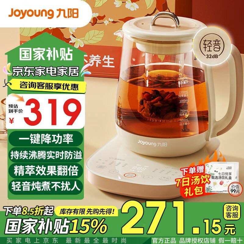 九阳W111电热水壶大容量快速烧水仅58.66元
