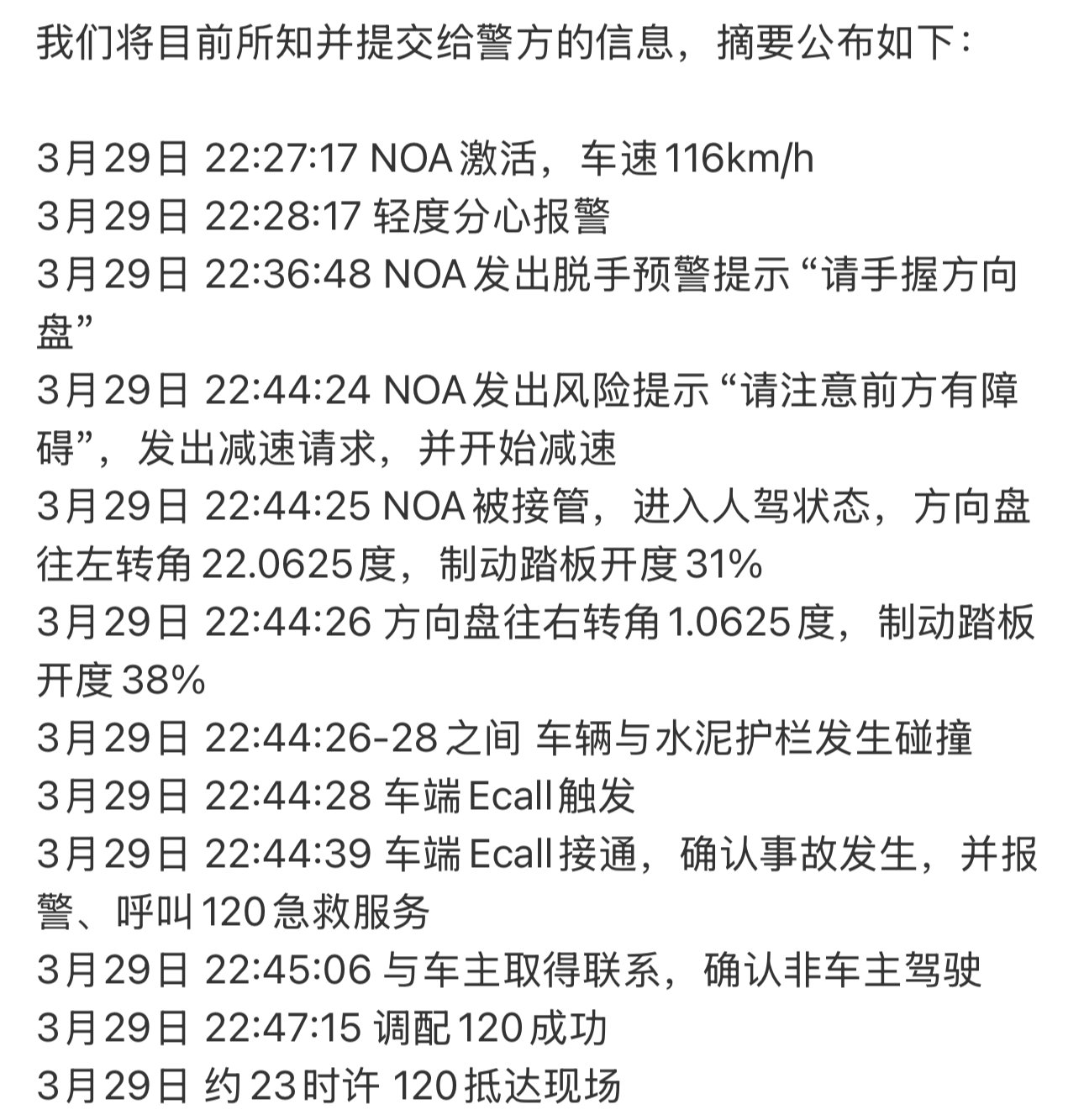 雷军提到团队第一时间成立了专项小组,30日赶赴了现场,31日配合警方调取并提交了他们掌握的车辆数据。
