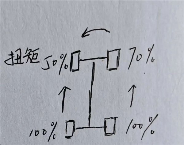 比如一开始的漂移,打开漂移模式后,iTAC 会让后轮动力拉满,前轮降低扭矩输出,甚至给一个负扭矩(与前进方向反着来),这时 ESP 给内侧的轮子来点刹车,车子很轻松的就漂起来了。