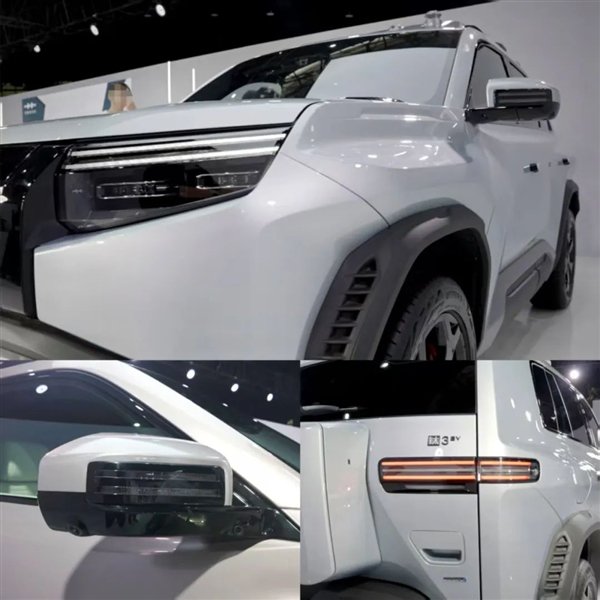 所以方程豹的工程师也跟我们坦言,方程豹能如此还原,离不开工程上的努力。比如这个 120° 折角的叶子板,对冲压工艺的要求很高,但他们愿意死磕这些细节,去打磨钛系列的第一款车。