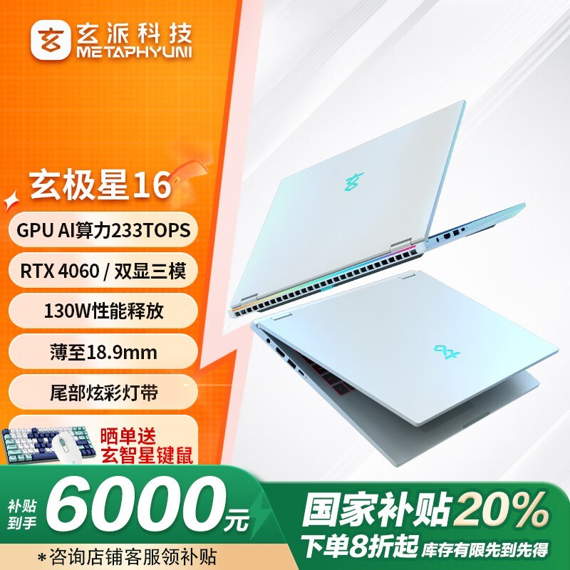 玄派玄极星16游戏本,i7+RTX4060,5999元好价不容错过!