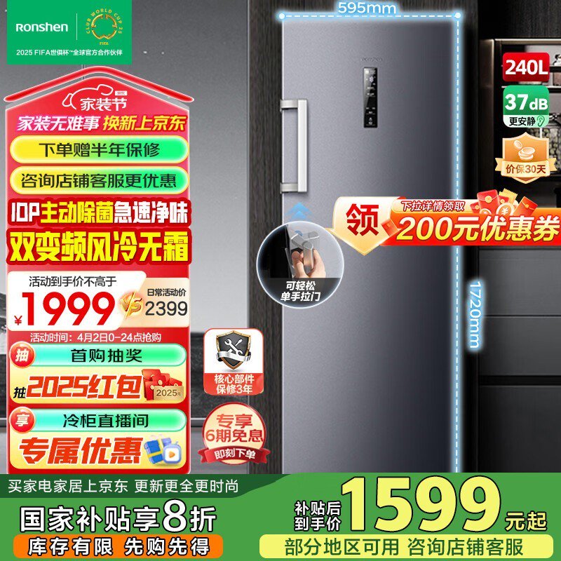 容声240升立式冰柜星蕴系列大容量冷冻优惠促销