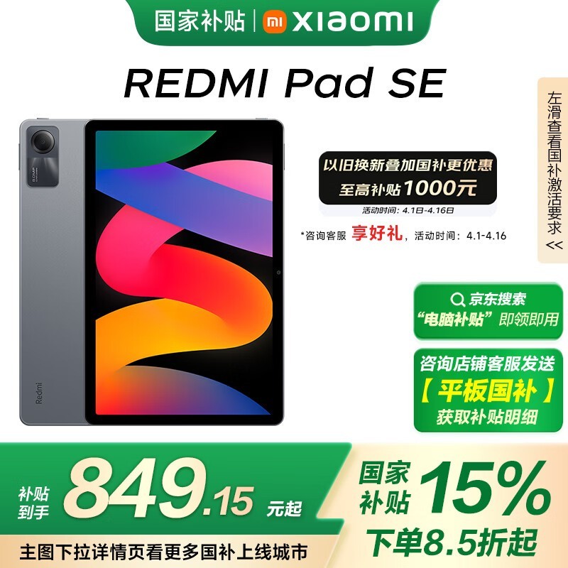 红米Pad SE平板电脑11英寸京东秒杀459元享品质标杆体验