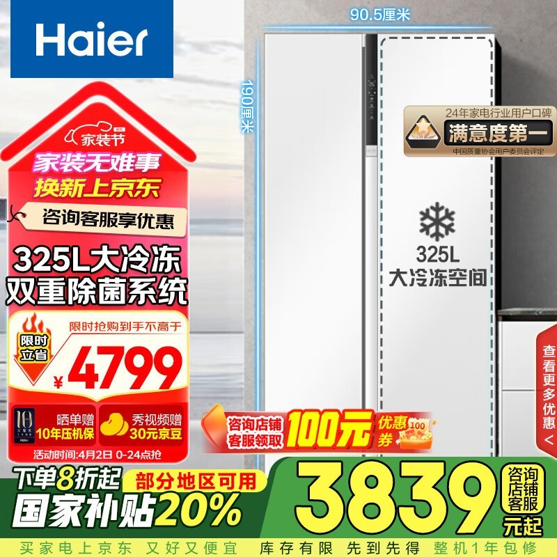 海尔621L风冷对开门冰箱京东促销低至2988元