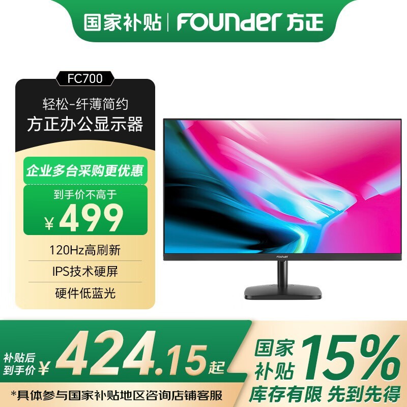 方正Founder FC700专业办公显示器高清IPS屏低蓝光仅388元