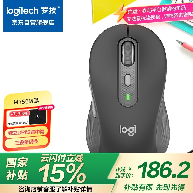 罗技M750蓝牙无线鼠标京东云闪付国补仅185元