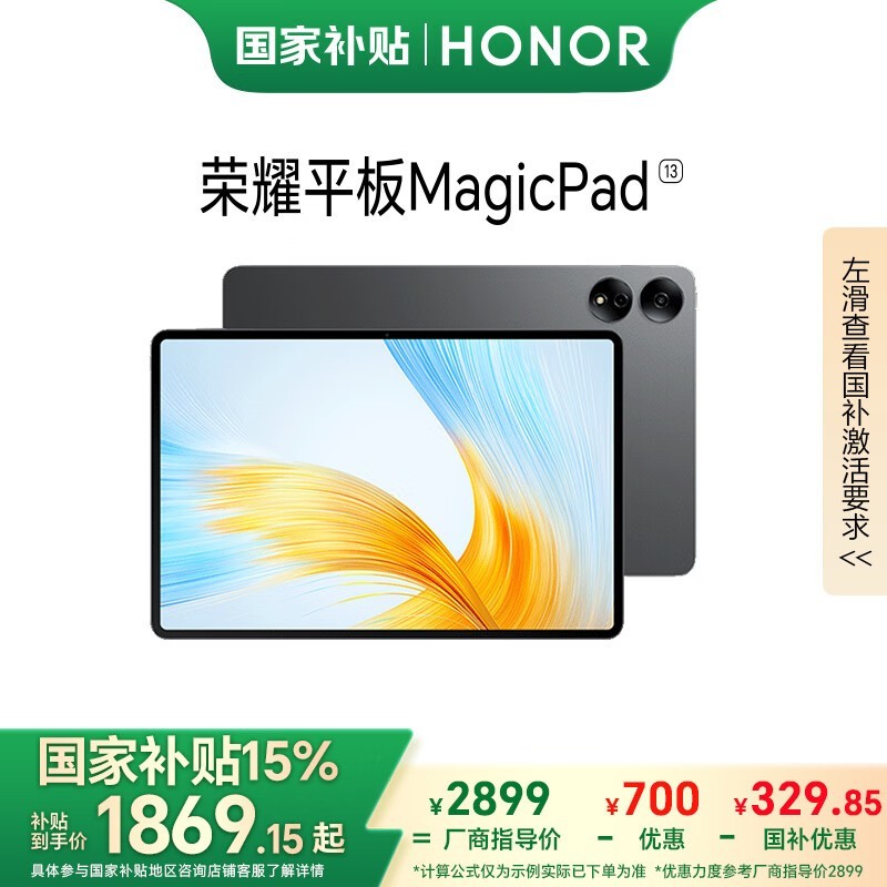 荣耀HONOR MagicPad 13英寸平板电脑京东特惠1859元到手