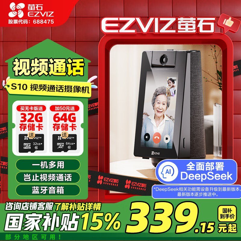 萤石S10摄像机京东优惠,中山享30%补贴