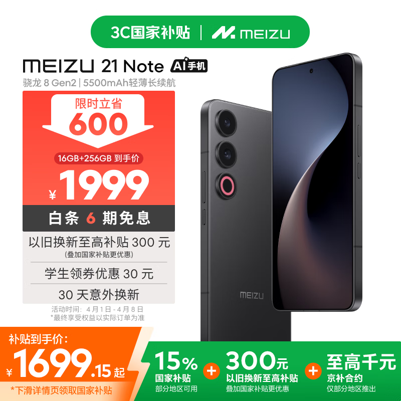 魅族MEIZU 21 Note 5G手机到手价1529元