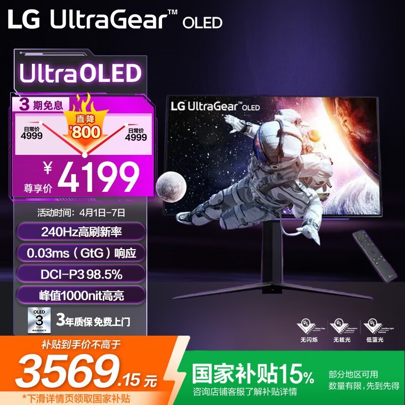 LG 27GS95QE 26.5英寸OLED显示器优惠价4099元