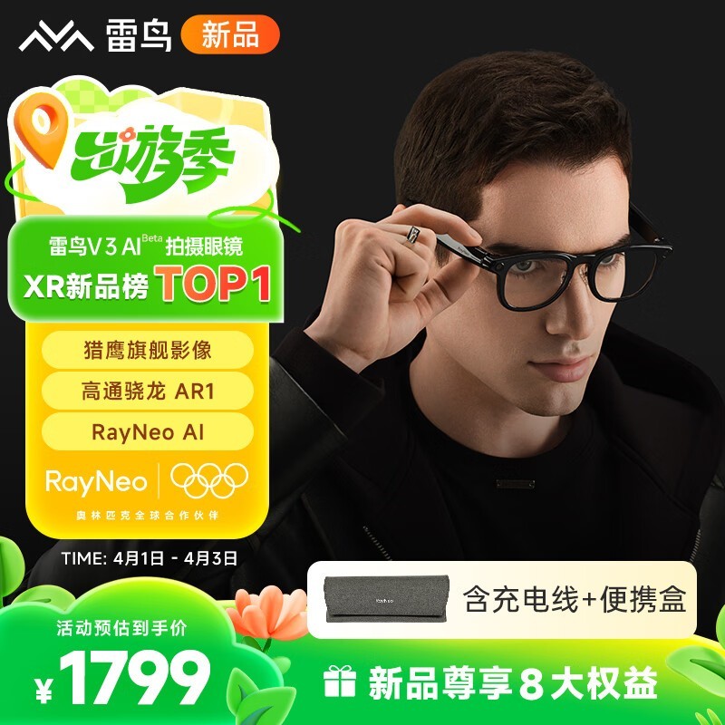 雷鸟V3新品AI拍摄智能眼镜京东优惠价