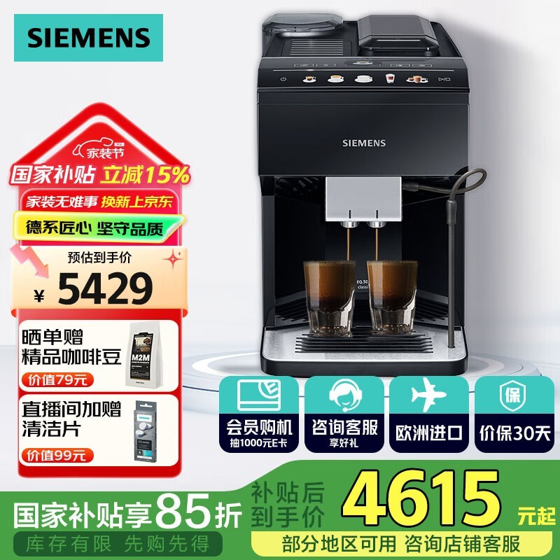 西门子全自动意式咖啡机TP513C09京东促销价4383元