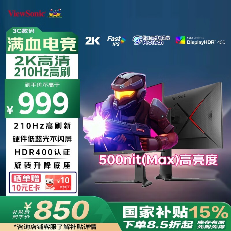 优派VX27G81电竞显示器,2K分辨率200Hz刷新仅849元