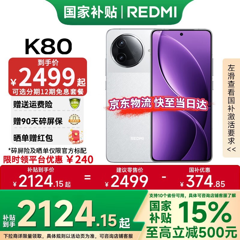 红米K80 5G手机(12GB+512GB)京东优惠价2336元