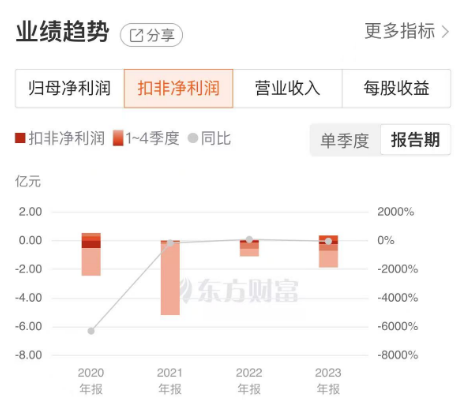 扣非净利润连续亏损5年