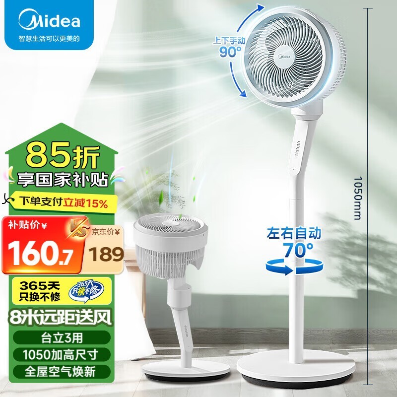 美的GAF20CB交流空气循环扇白色台立两用风扇促销