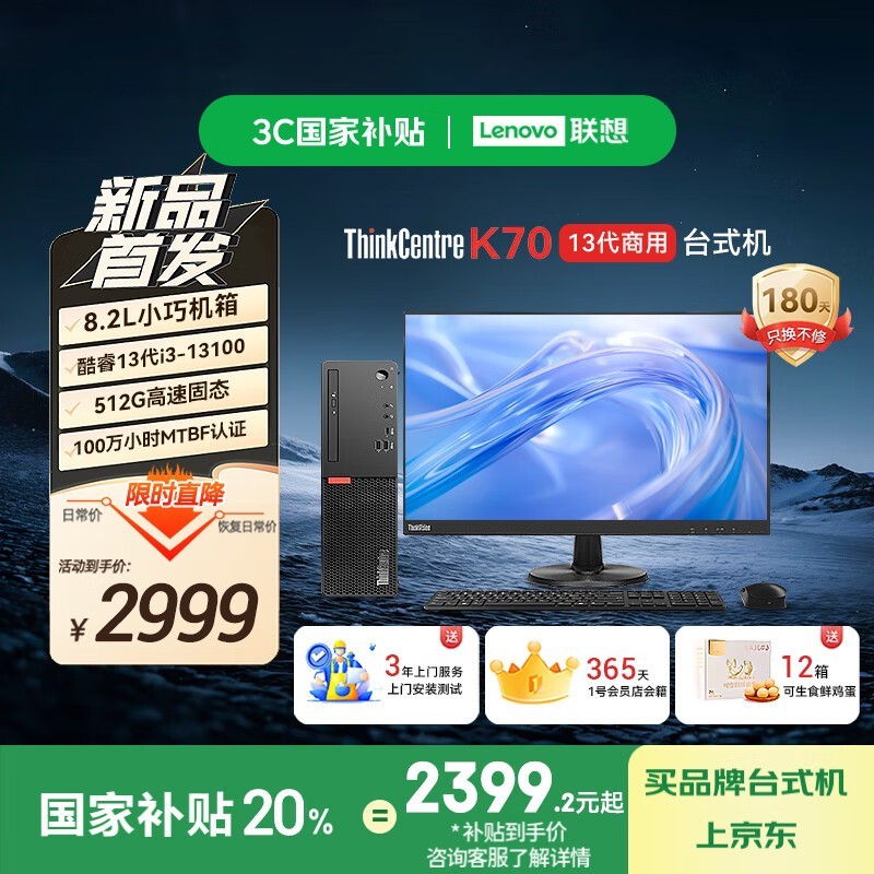 联想Lenovo K70台式机,部分地区8折优惠