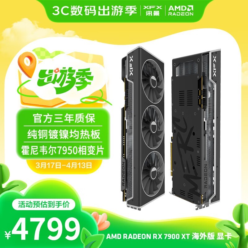 讯景 RX 7900 XT 海外版 PRO 显卡京东特惠4799元