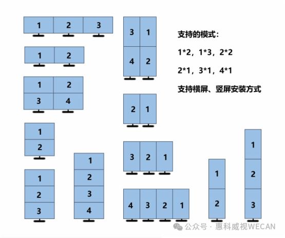 -支持1-4块屏幕横竖屏混合排列,每屏均可独立设置分辨率、旋转角度(0°/90°/180°/270°),适配异形拼接、竖屏广告机、环形展厅等复杂场景,杜绝画面拉伸模糊。