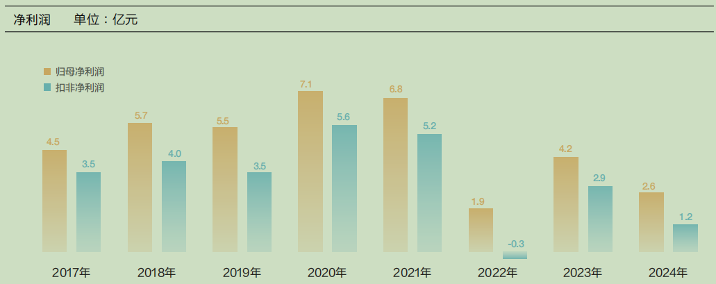 报告期内,太平鸟实现营业收入68.0亿元,同比下降12.7% ;实现归母净利润2.6亿元,同比下降38.7% ;实现扣非净利润1.2亿元,同比下降57.4%。拉长时间线来看,净利是除2022年外最差的一年。