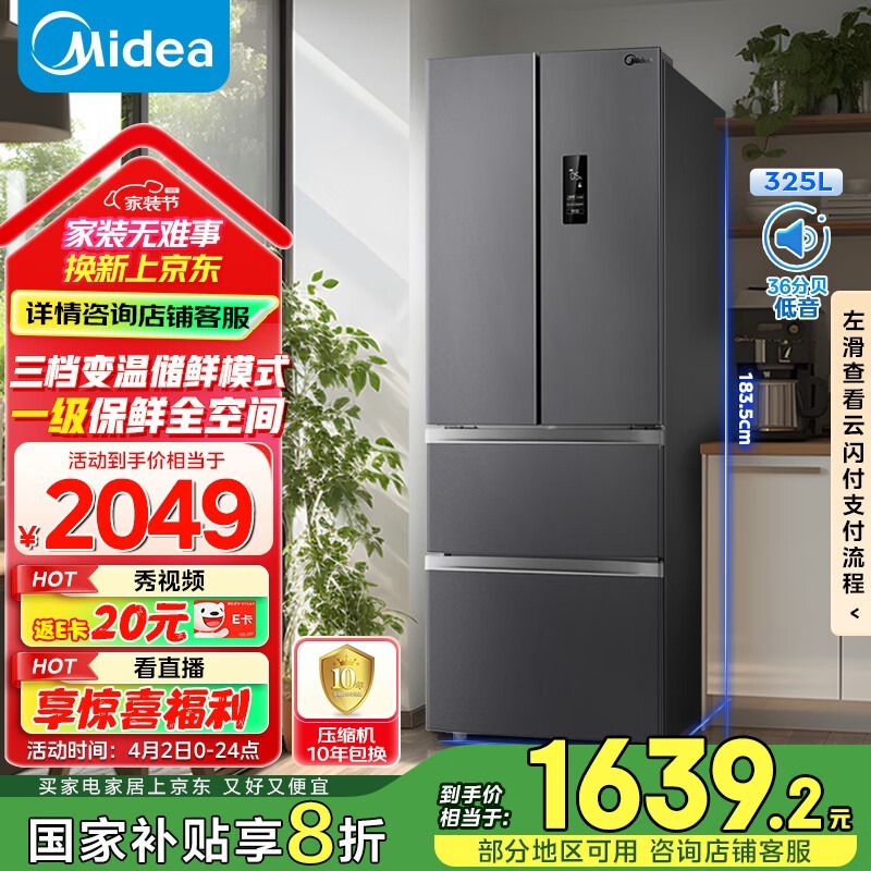 美的BCD-325WFPM(E)法式多门冰箱大容量双变频促销