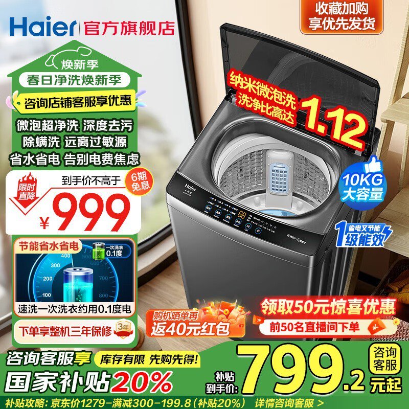 海尔XQB100-Z10E0波轮洗衣机10kg大容量促销