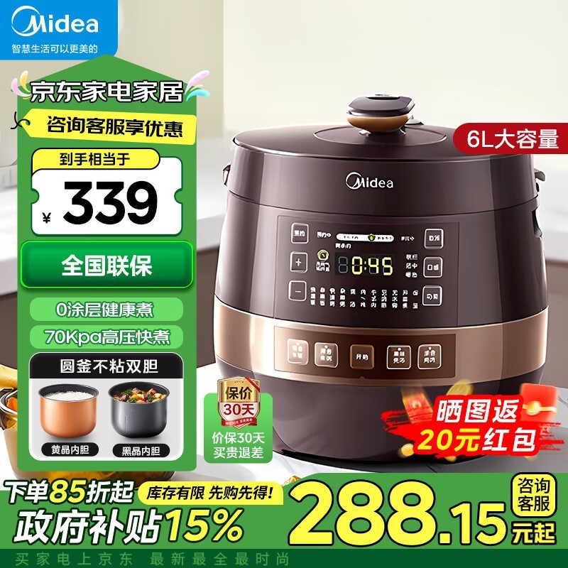 美的电压力锅60Easy203京东促销到手仅259元