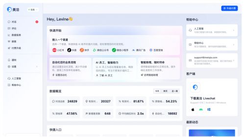 美洽工作台现已全面AI化,更轻盈,更贴合业务场景,更易上手。一个工作台7X24h自动化处理所有渠道客户消息,用 AI 与自动化赋能企业获客增长与售后服务。