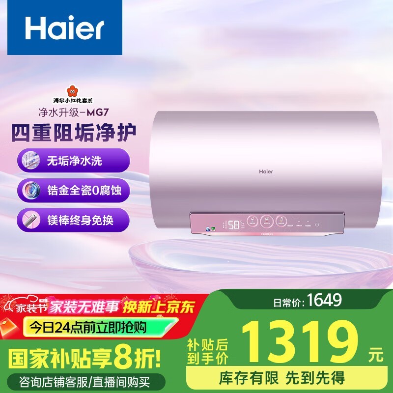 海尔EC8002-MG7U1电热水器大容量80L仅1234元