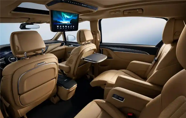 内饰方面,GL8陆尚承袭GL8家族设计理念,仪表台、中控台、车门内饰板大面积使用软材包覆,配备12.3英寸中控双联屏和15.6英寸后排可翻折智慧屏。