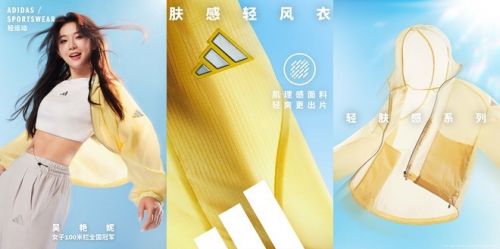 adidas Sportswear“轻肤感”系列全新升级,女生款“轻风衣”推出白色防晒款与黄色肤感款,奥运会网球混双银牌得主王欣瑜上身的白色款采用UPF 100+防晒面料,提供两倍于国标值的持久防晒,搭配收腰设计,勾勒优雅曲线;女子100米栏全国冠军吴艳妮演绎的黄色款则以短款剪裁与底部抽绳设计,优化身材比例,肌理感拼接面料增添质感与灵动。搭配同系列束脚裤,打造松弛且精致的运动美学。