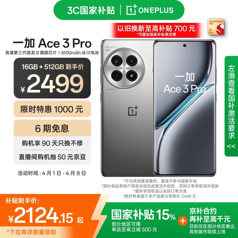 一加Ace3Pro钛空镜银骁龙8Gen3现优惠