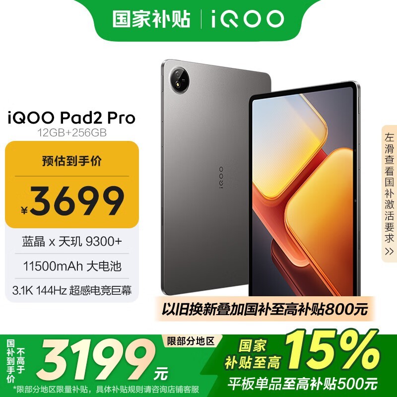 iQOO Pad2 Pro平板电脑京东促销到手价3499元