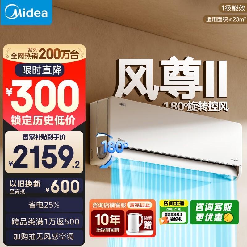美的风尊二代壁挂式空调1.5匹新一级能效促销