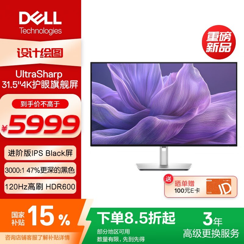 戴尔U3225QE 31英寸4K显示器优惠价4973元
