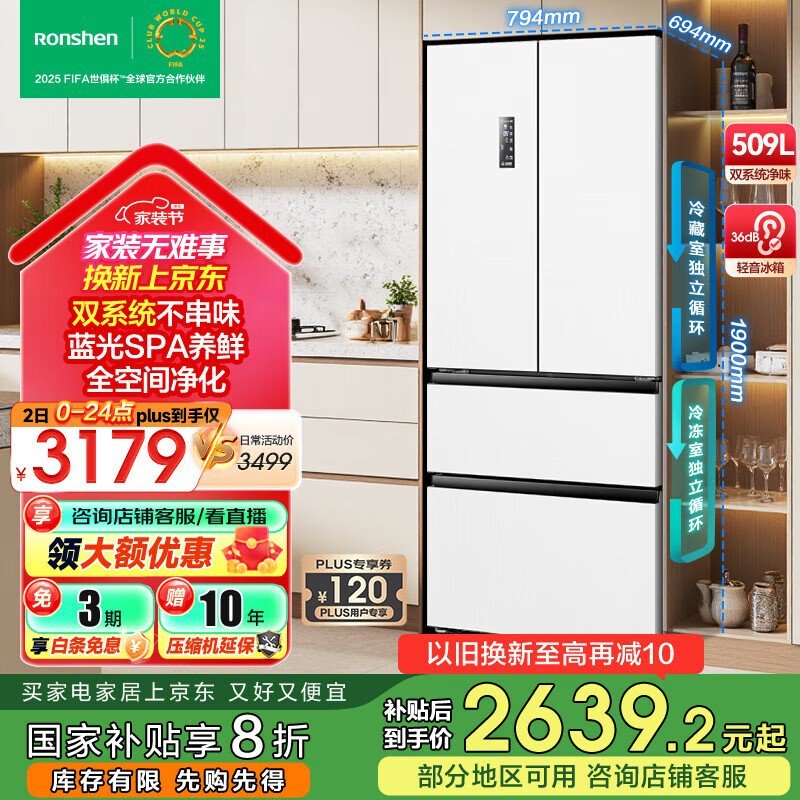 容声509升法式多门冰箱京东优惠价2464元