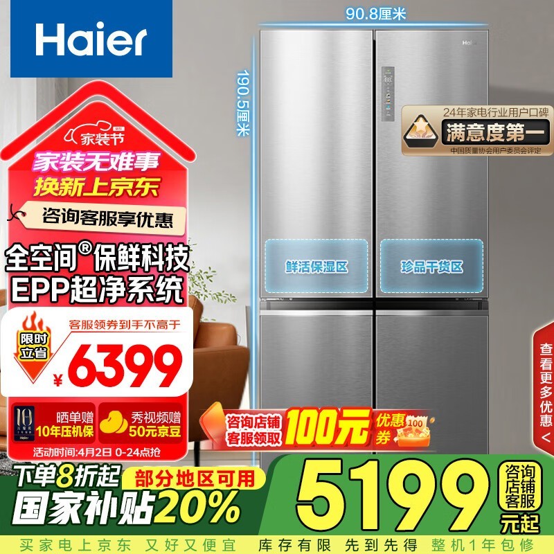 海尔657L冰箱,多种功能,低至5048元