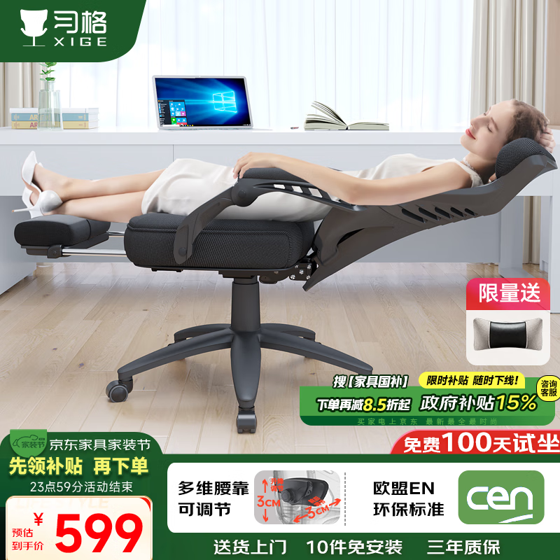 习格电脑椅黑框黑网带搁脚,活动价461元