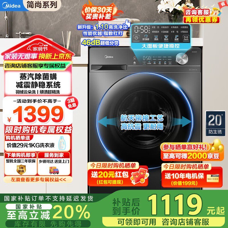 美的简尚系列滚筒洗衣机MG100V36T促销信息