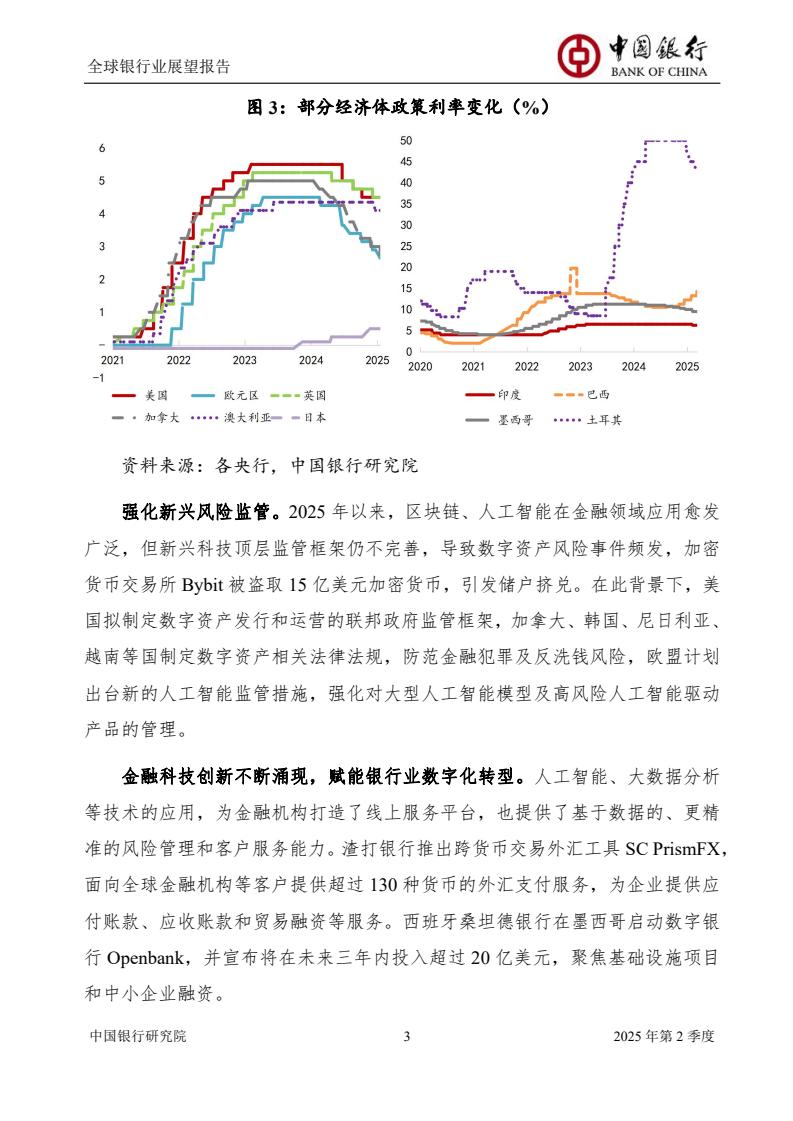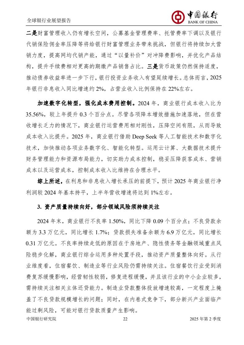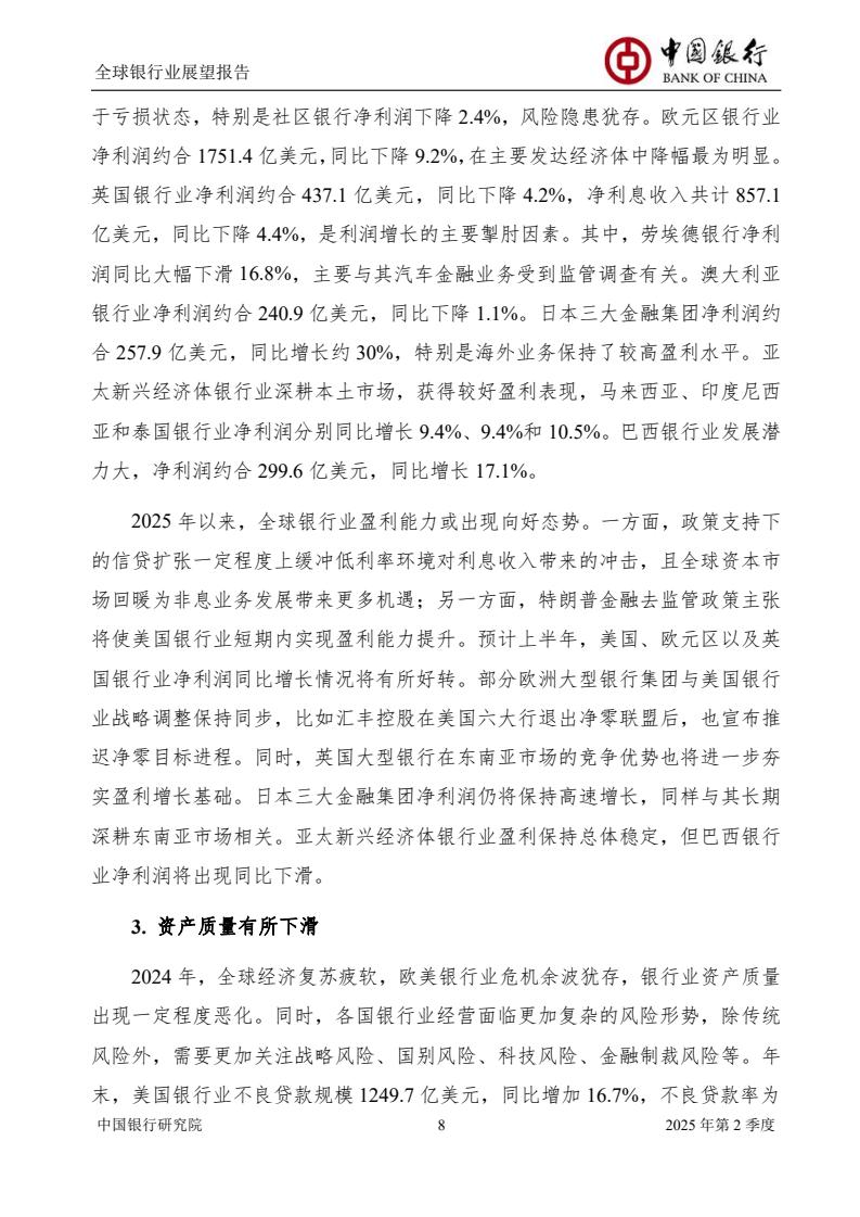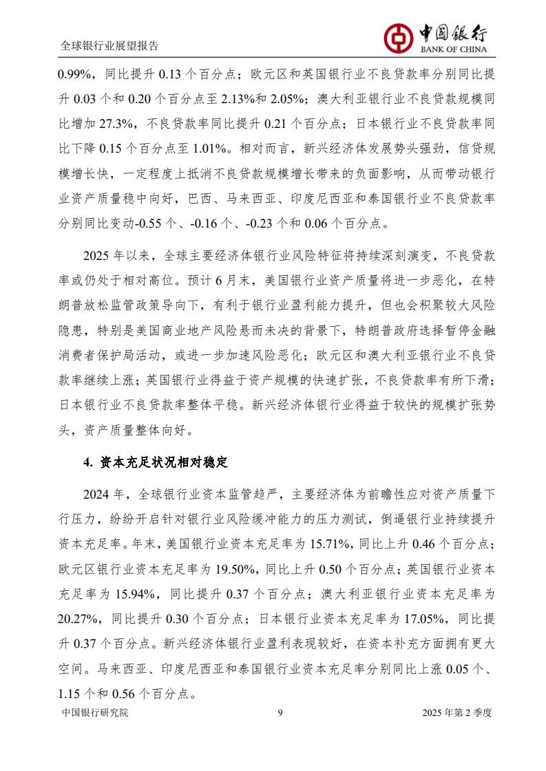 2025年上半年,全球政经格局加速演化,银行业经营面临机遇与挑战,规模扩张总体平稳,盈利能力整体回暖,资产质量有所下滑,资本充足状况相对稳定。